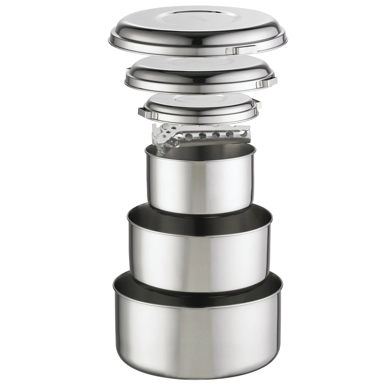 Das Topf-Set Alpine™ 4 besteht aus unglaublich haltbarem Edelstahl und hält selbst extremen Bedingungen zuverlässig stand. Es ist perfekt für den intensiven Gebrauch durch Vielreisende oder durch Führer und Institutionen, wo Sie viele Mahlzeiten für eine Vielzahl von Abenteuern zubereitet werden.